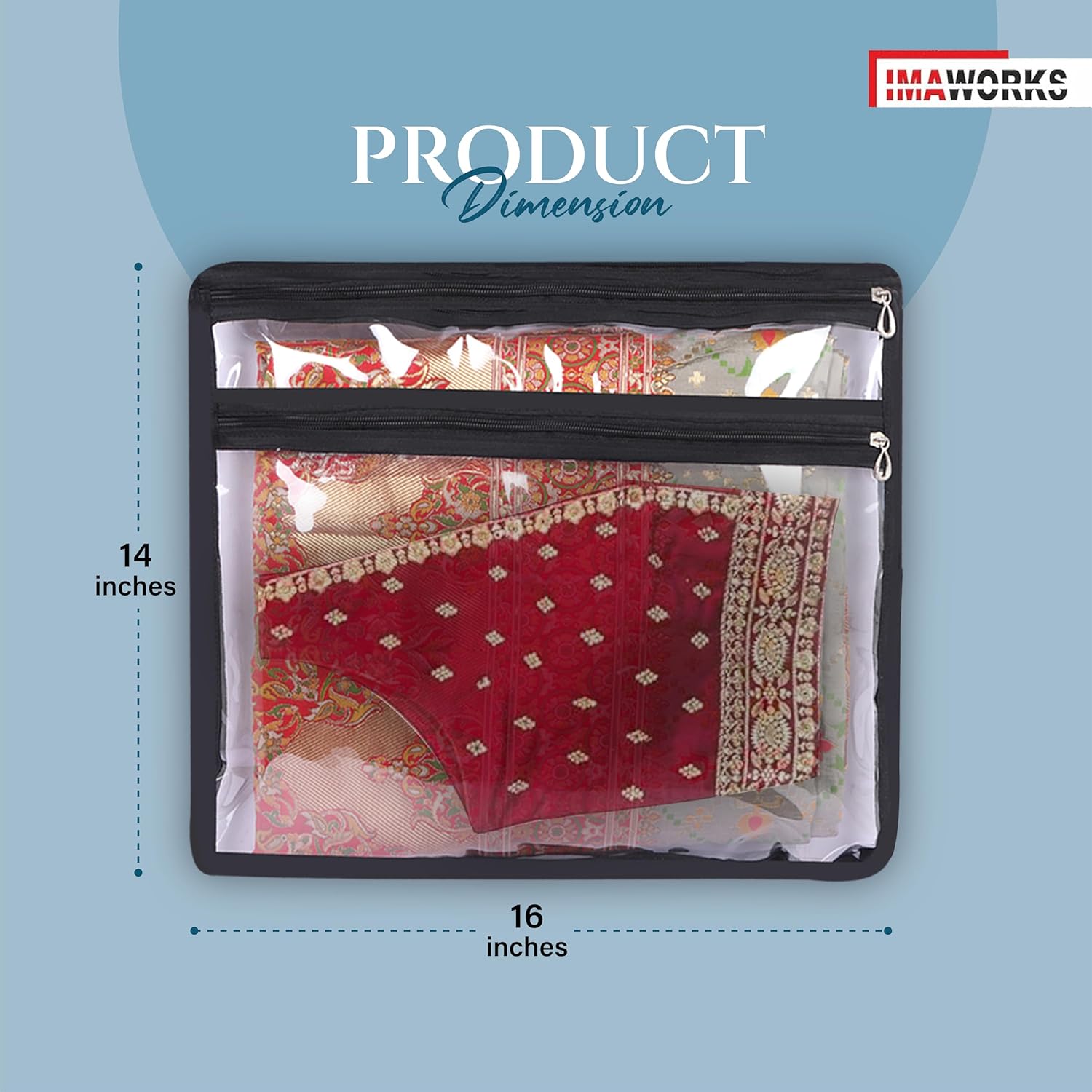 IMAWORKS Transparent Single Saree Bags are the perfect solution for storing and protecting your precious sarees and Blouse. These transparent saree covers with zip allow you to easily identify the saree and blouse without having to open the bag.