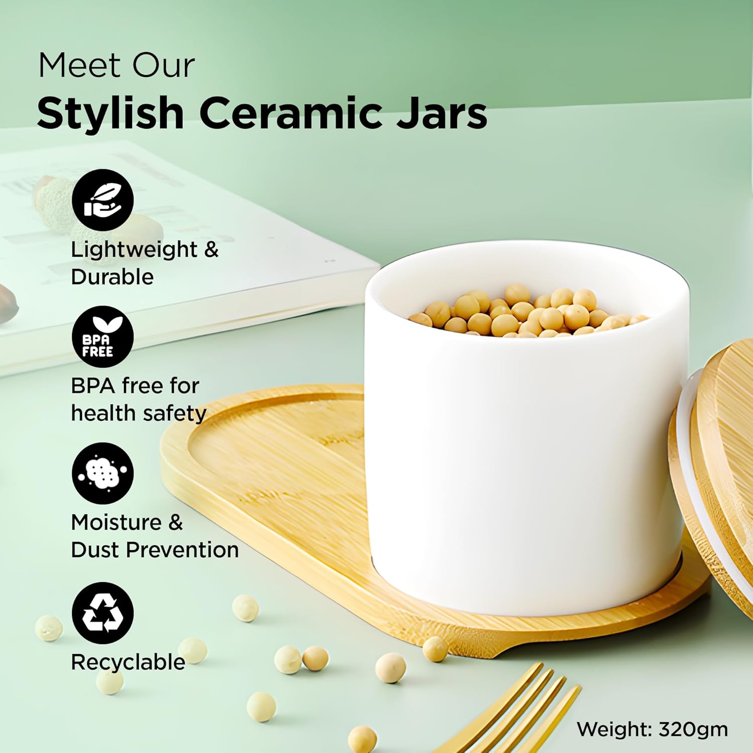 UMAI presents a stylish and practical solution for your kitchen storage needs. This white ceramic jar with a bamboo lid combines elegant design with everyday functionality. The jar’s 400ML capacity makes it a good choice for storing a variety of items, from coffee, tea, and sugar to pasta, snacks, and dry fruits. The wide mouth ensures easy access and scooping, making it useful for everyday use. The quality ceramic material provides a durable and sturdy container for your kitchen essentials. The airtight bamboo lid ensures the freshness of your stored goods while adding a touch of natural elegance to your kitchen. This kitchen container set is designed with both aesthetics and practicality in mind, making it a perfect addition to any modern kitchen. This UMAI jar makes a thoughtful gift for housewarmings or any occasion for the home chef or baking enthusiast in your life. The jar is easy to clean and maintain, adding to its appeal for everyday use. Invest in a product designed for long-lasting performance and enjoy a clutter-free and organized kitchen with UMAI.