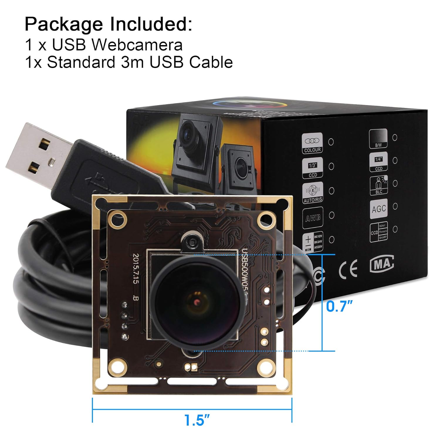 Superior Sensor Aptina in excellent quality: 5MP USB camera webcam use 1/2.5 inch Aptina MI5100 CMOS sensor, color rendering deviation less than 20%. The webcam is the high standard in terms of image quality and sensitivity performance, industrial mini webcam camera module is perfect for high level video systems for employees or industry