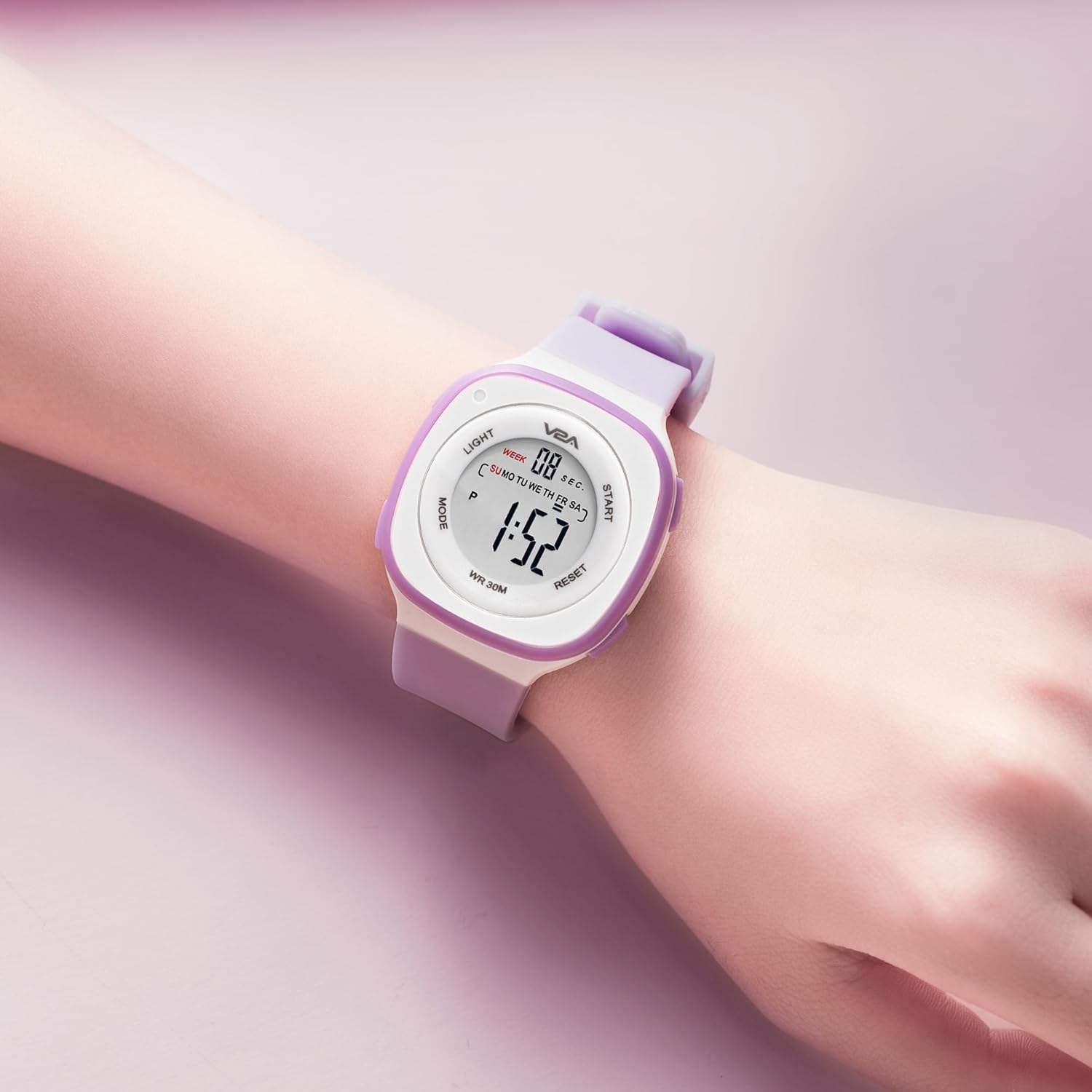 V2A Digital Watch for Girls – Kids Between 4 to 14 Years of Age Multi-Functional 30 M Waterproof Digital Sports Watches for Girls | Digital Watch for Girls age 4 5 6 7 8 9 (Lavender Case and Band)