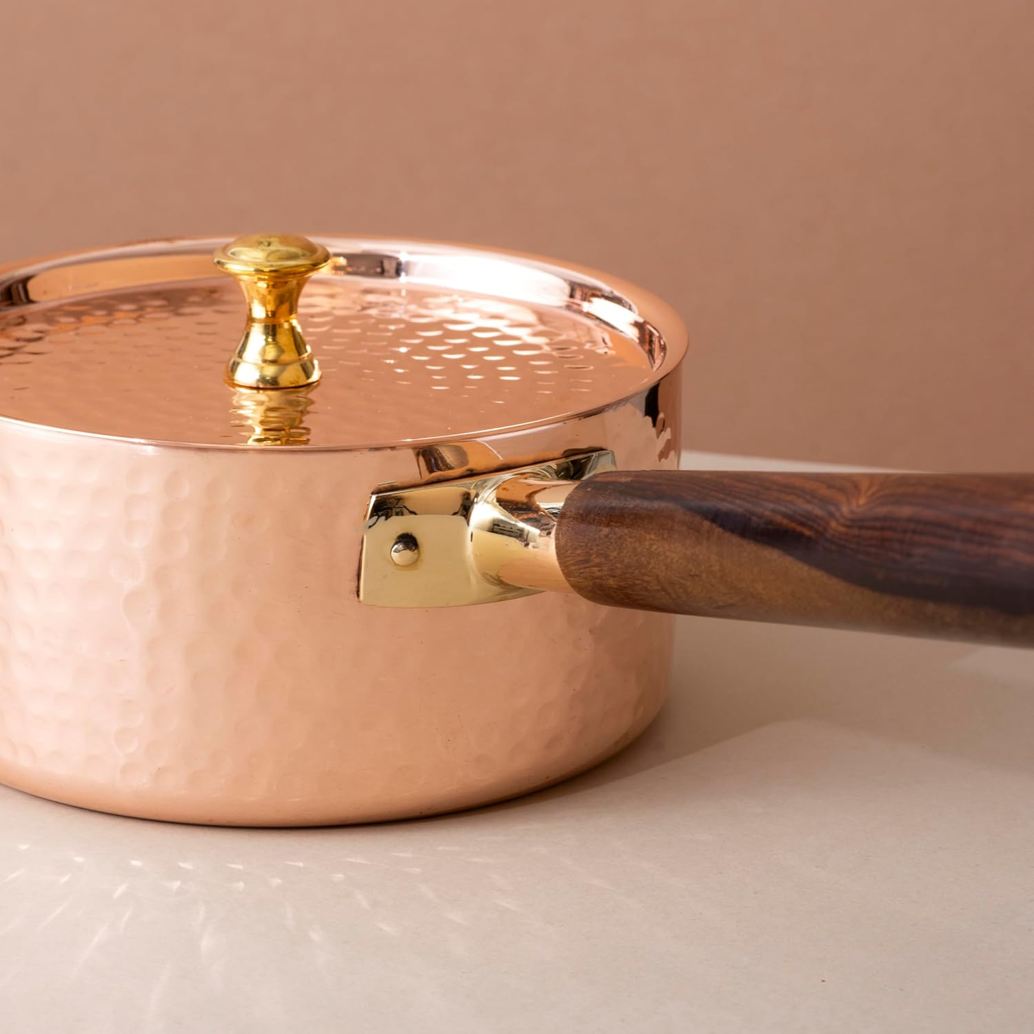 Premium Build — Premium Copper Construction with Tin Coating and Brass Handle for Traditional Indian Cooking