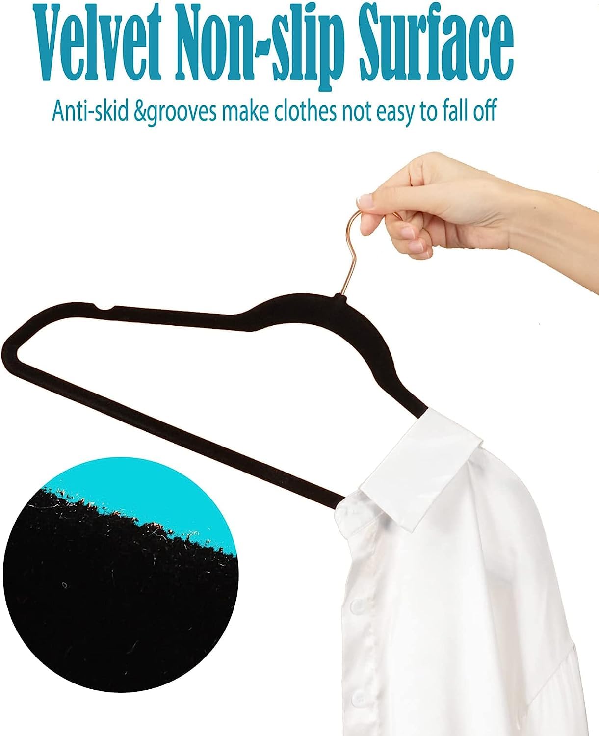 Soft Velvet Surface for Gentle Clothes Hanging: Designed with a luxurious, smooth velvet finish that protects delicate fabrics from snags and skin irritation, making them perfect for daily wardrobe use.