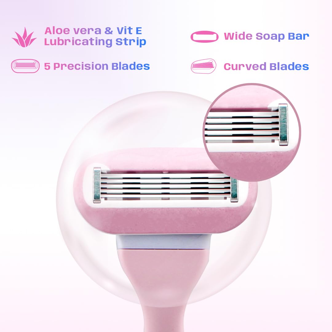 Aloe Vera Strip & Vitamin E – Each razor features a moisture-rich lubrication strip infused with Aloe Vera and Vitamin E, ensuring a smoother glide and added care for sensitive skin.
