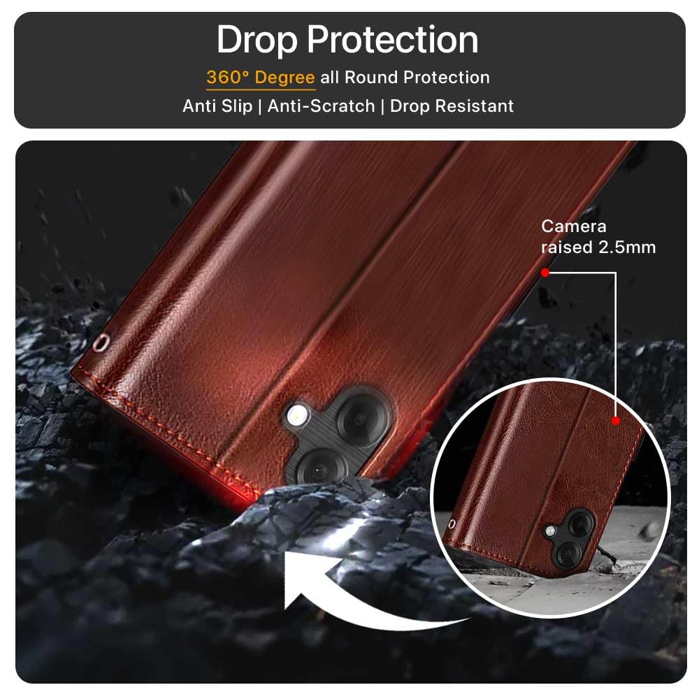 WOW IMAGINE Shock Proof Flip Cover Back Case Cover for Samsung Galaxy M07 | A07 | F07 (Flexible | Leather Finish | Card Pockets Wallet & Stand | Brown)