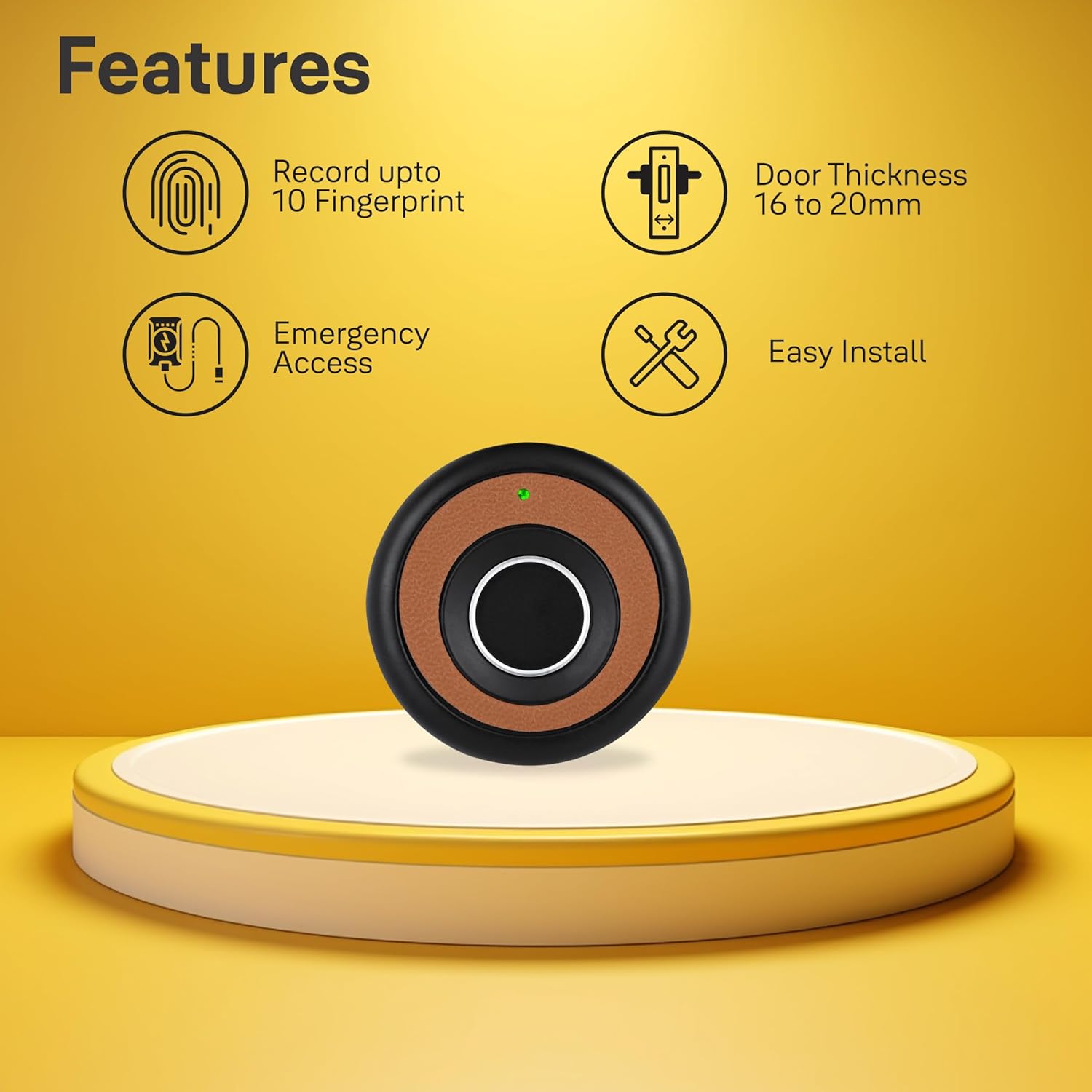 Yale Premium Fingerprint|Biometric Wardrobe Lock for Cabinets, Wardrobe & Almirah for Home & Office | Finish- Brown | Material – Zinc
