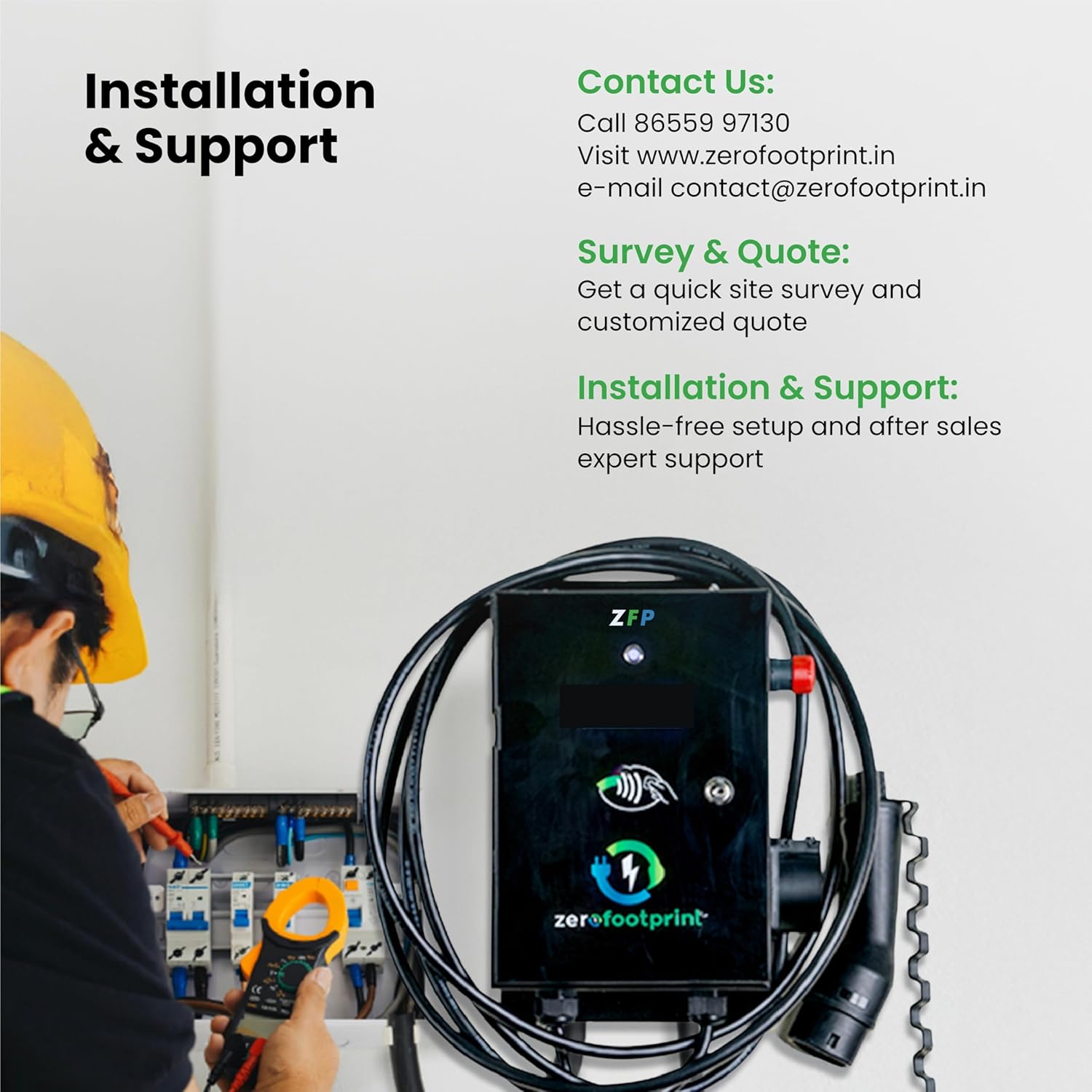 Customer Support: Enjoy a worry-free experience with our online customer support. The charger is easy to install and comes complete with connector, cable, EV charger unit, installation tools, and a user manual—suitable for both indoor and outdoor use. For safety, we recommend professional electrician installation. Our team is available across India to assist you anytime.