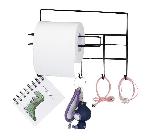 ZURATO Multipurpose Wall Mounted Towel, Tissue roll Holder for Kitchen and Bathroom with 5 Hooks Storage Organizer Rack for Clothes, Keys Spatula Ladle and Accessories Hanging